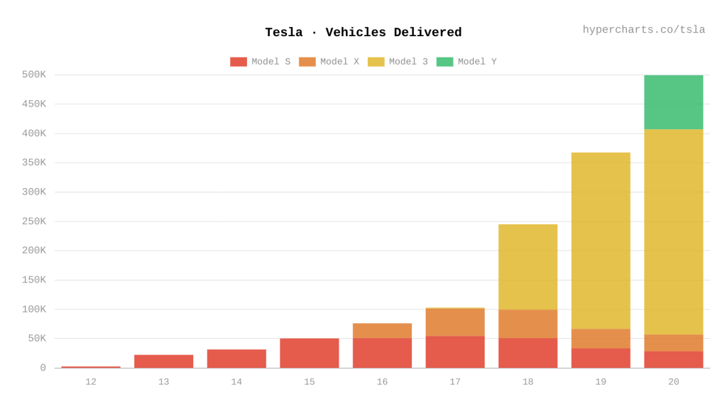 실제로 2014년 3만여대를 인도한 테슬라가 2015년 8월에 2020년에 50만대 인도를 목표로 한다고 발표했을 때 소위 전통 언론들은 모두 비웃었다. (https://seekingalpha.com/article/2501685-why-projections-for-tesla-to-sell-500000-cars-in-2020-are-absurd, https://www.bloomberg.com/news/articles/2015-08-10/here-s-how-elon-musk-takes-tesla-to-500-000-cars-in-five-years). 하지만 실제로 테슬라는 2020년도에 50만대를 인도하였고(연평균 성장율 약 58%) 올해는 거의 90만대를 인도할 것으로 예상된다.