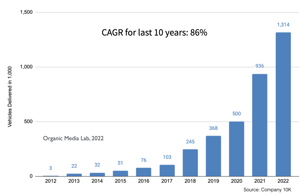 대표적인 오가닉 비즈니스인 구글, 아마존, 메타(페이스북)와 같은 기업들은 현재까지 20여년간 기하급수적 성장을 하고 있다. 테슬라는 자동차, 충전 네트워크, 에너지 등 모든 시장에서 기하급수적 성장을 전제로 비즈니스 계획을 세우고 실행하고 있다(예를 들어, 차량 인도 기준으로 2022년까지 10년간 연평균 86%의 성장을 했고 당분간 연평균 50% 성장을 목표로 하고 있다).