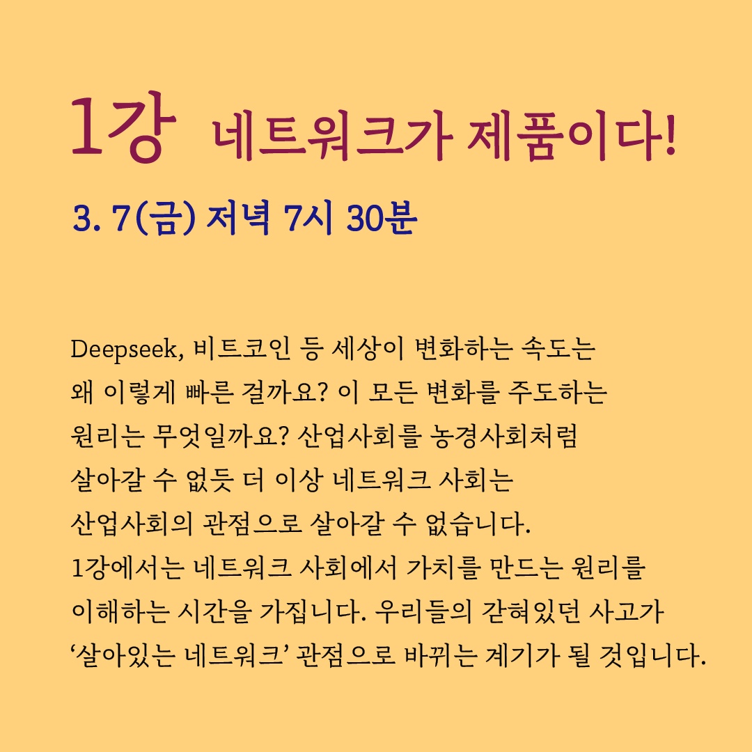 세상이 많이 변하고 있다는 것은 모두 느끼지만 내가 무엇을 해야 할지 모르는 안개속이라면, 반대로 전기차, 네트워크, AI, 왠지 다 안다고 느껴진다면, 두 경우 다 이 강의를 권해드려요. 모든 편견과 선입견을 내려놓고 새로운 세상이 나에게 어떤 가치로 다가오고 있는지, 어디서 출발해서 어디로 가야 할지, 열린 마음으로 퍼즐을 맞추러 오시면 좋겠습니다.